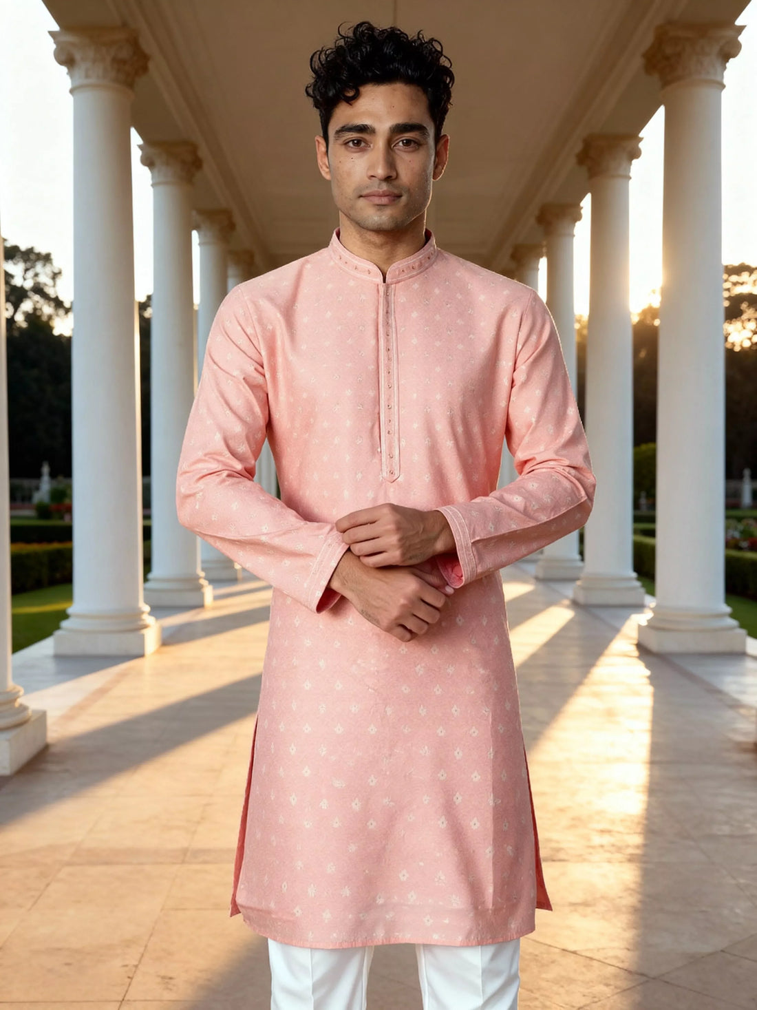Jacquard Floral Kurta and Pyjama SetJacquard Floral Kurta and Pyjama Set