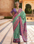 Get the feel of a traditional look in this Beautiful Green Geometric Print Dola Silk Saree.