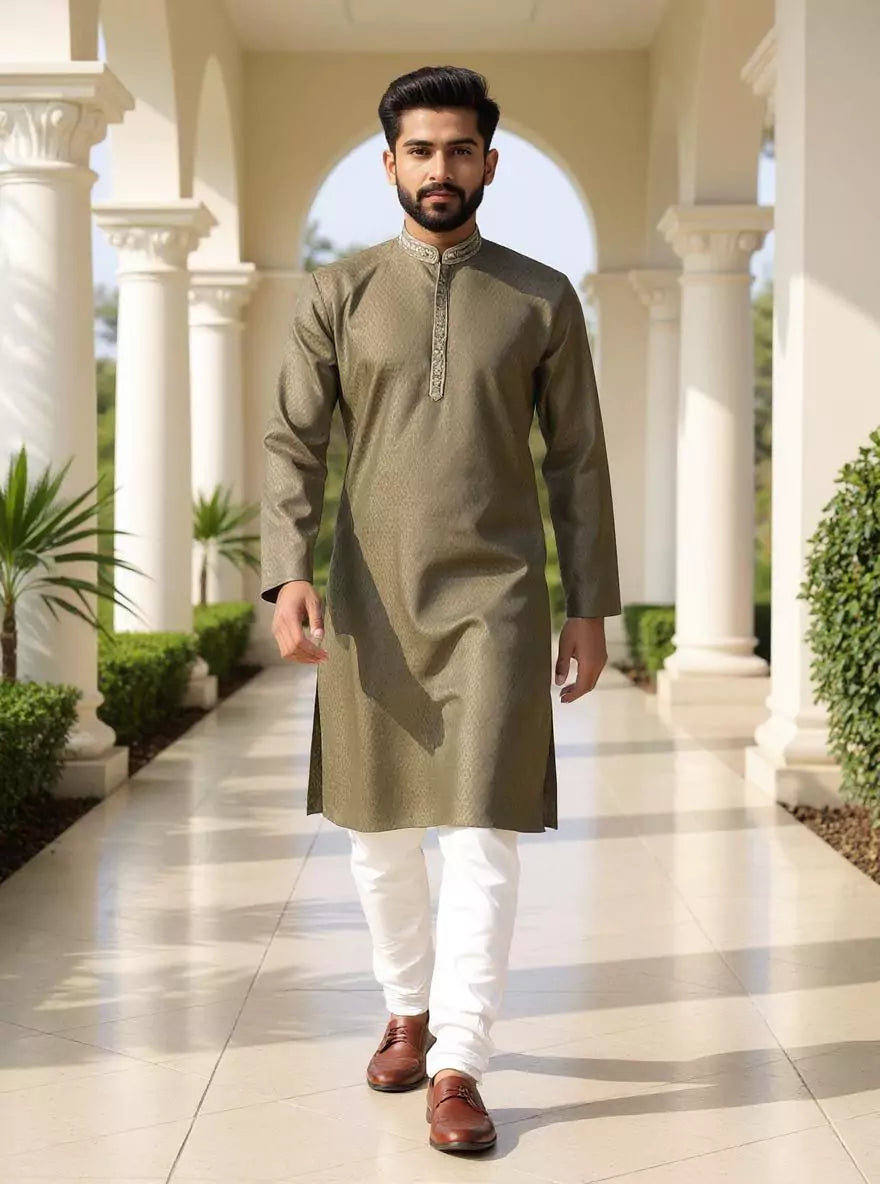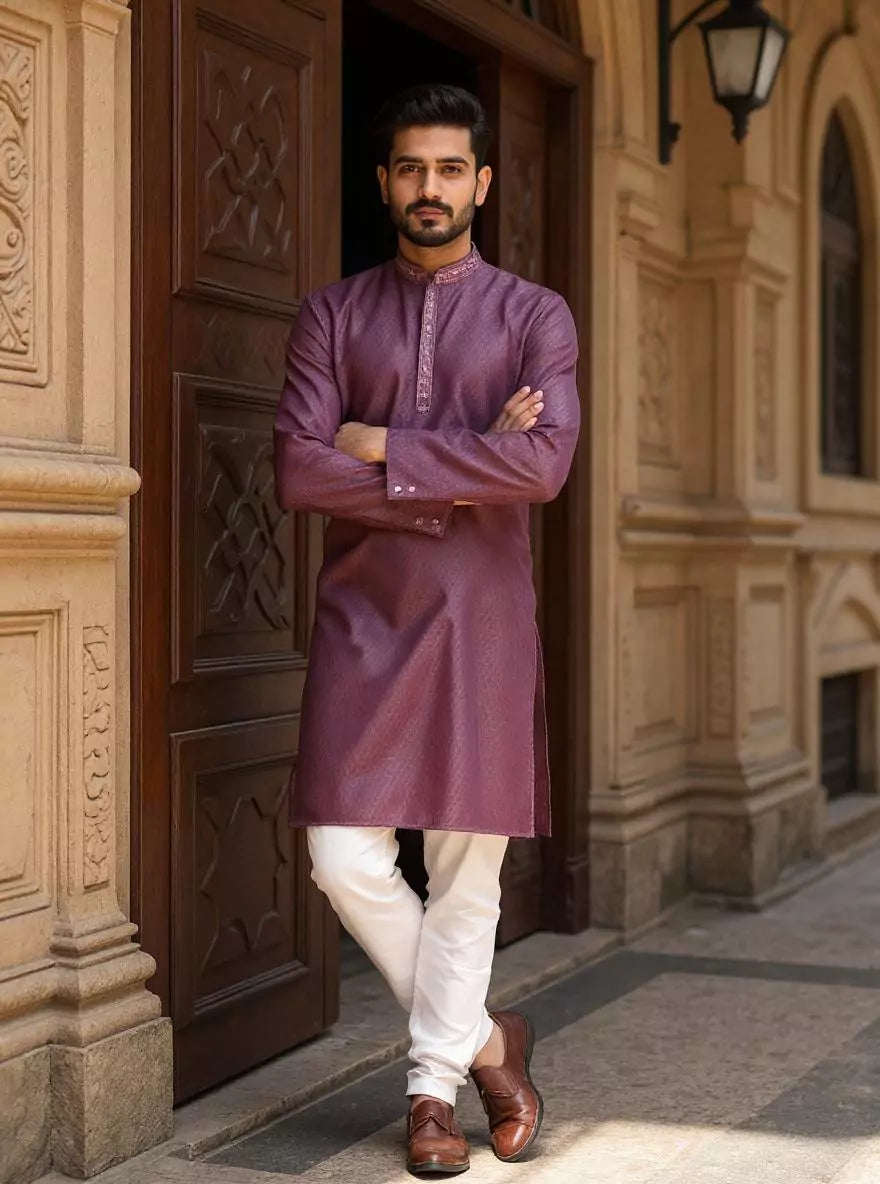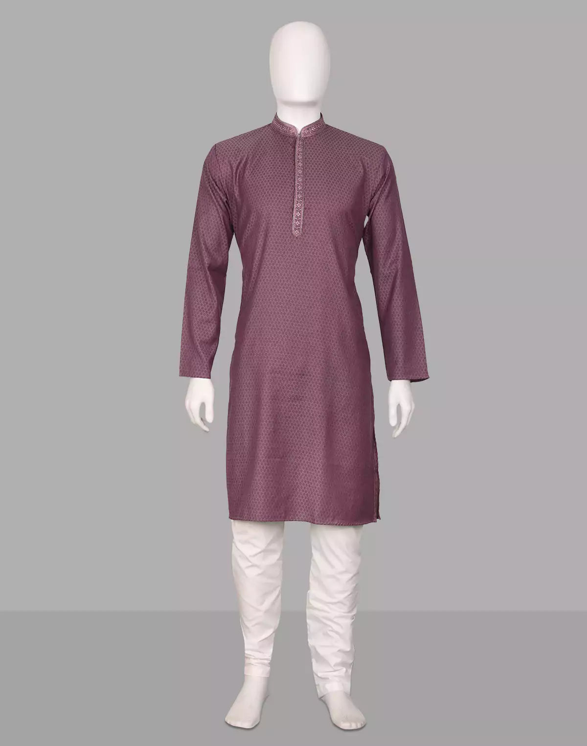 Exclusive Self-geometric design cotton kurta with off-white pyjama. A comfy and stylish casual set perfect for everyday and festive wear.