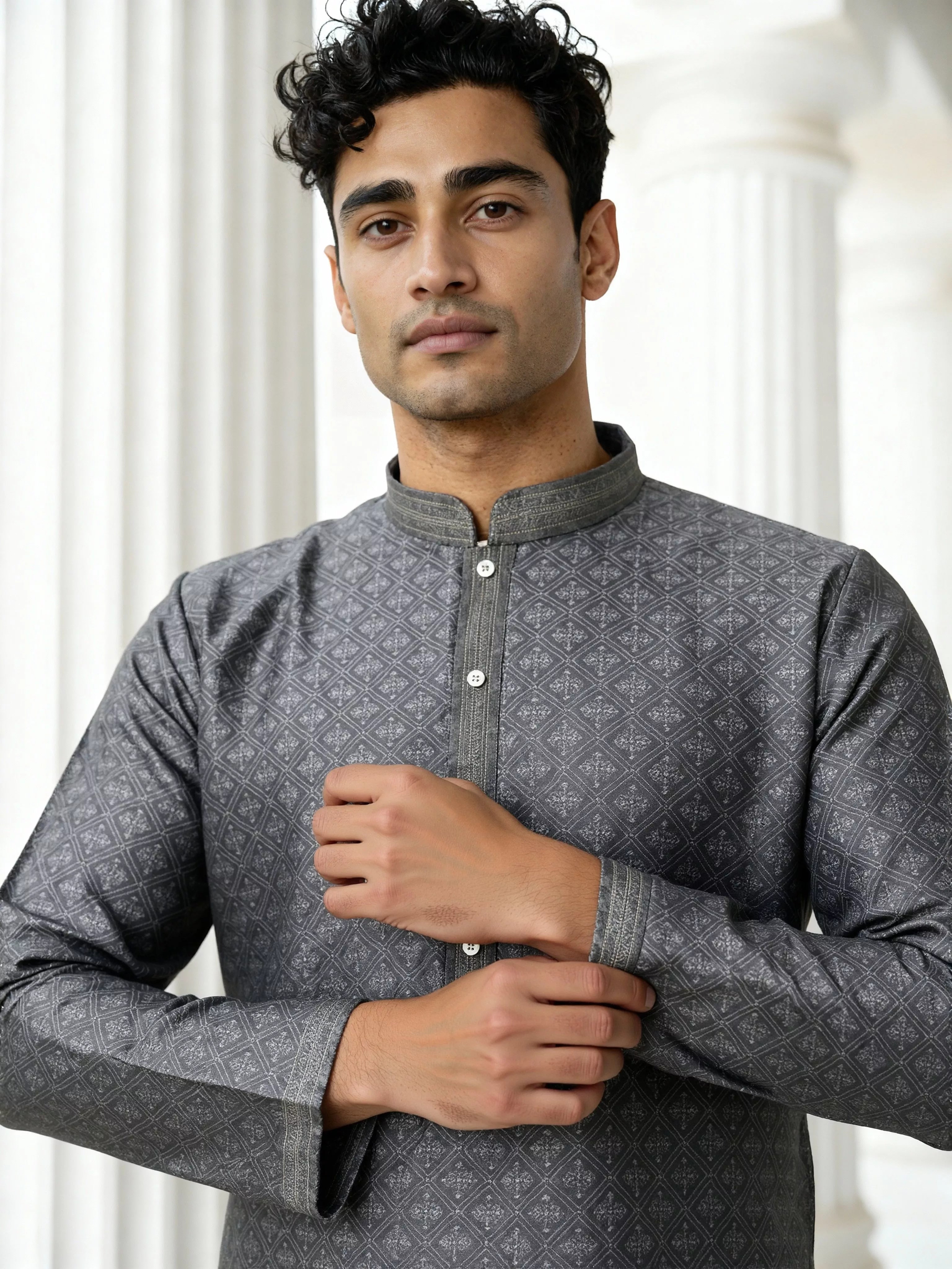 Self Patterned Jacquard Kurta Pyjama Set for Men